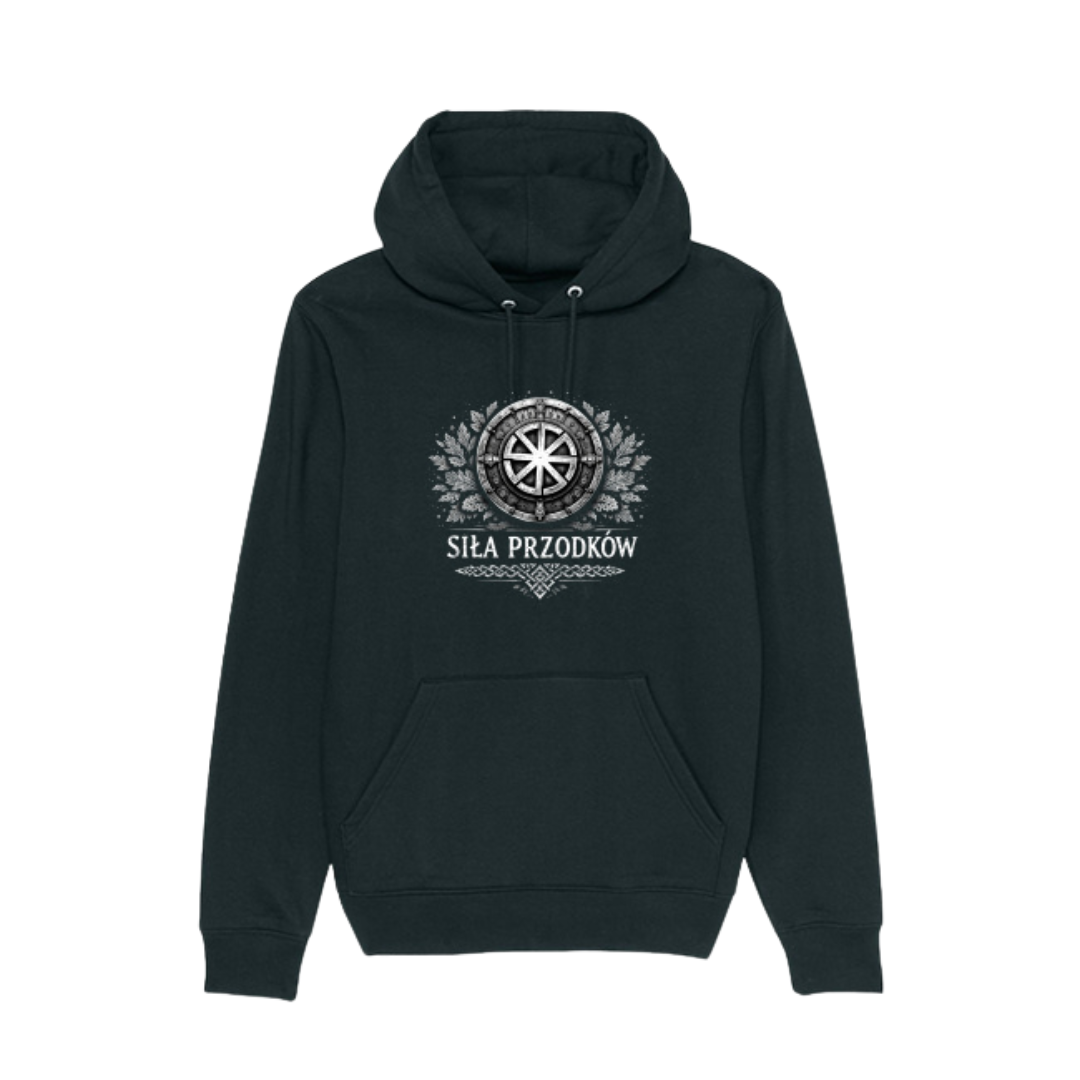 Uniwersalna bluza z kapturem z linii Eco Aware. Z przodu nadruk: Siła Przodków.
